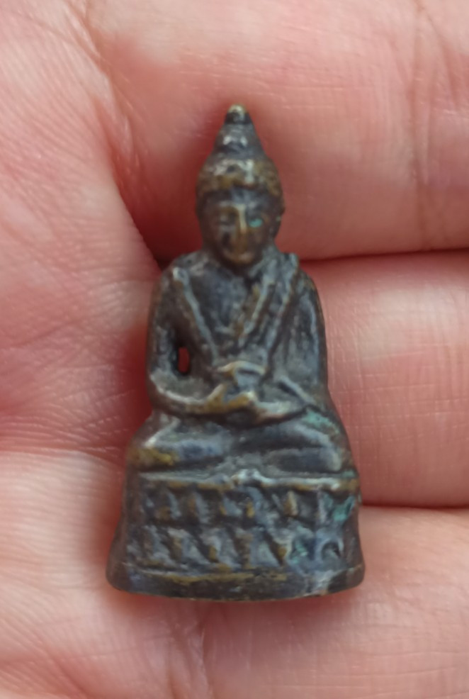 พระชัยวัฒน์หล่อโบราณ หลวงปู่ธูป วัดแคนางเลิ้ง รุ่นแรก ปี 2484 เนื้อทองผสมสวยเดิม เก็บเก่าผิวหิ้งครับ ..องค์ที่ 2 |