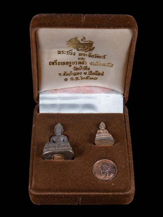 4องค์ พระกริ่งไพรีพินาศ ญสส. วัดบวรนิเวศวิหาร ปี 2535 เนื้อนวะ กล่องกำมะหยีเดิม มีซองกระดาษ 2 ซอง |