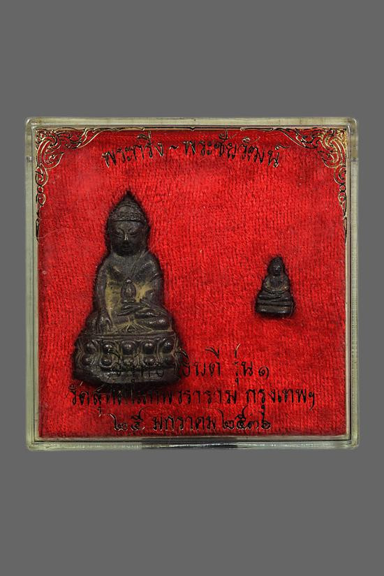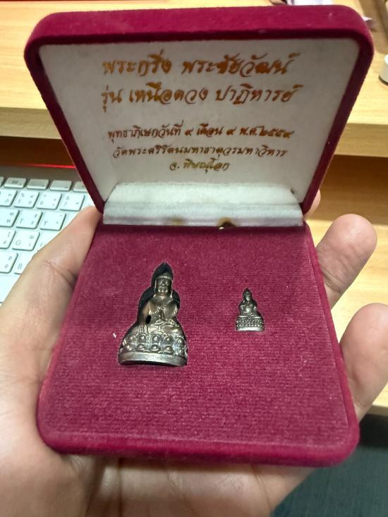 พระกริ่งนเรศวรสนามจันทร์2+พระชัยวัฒน์ เนื้อทองขาว พร้อมกล่อง(ฝากล่องมีรอยร้าวนิดหนึ่ง) |