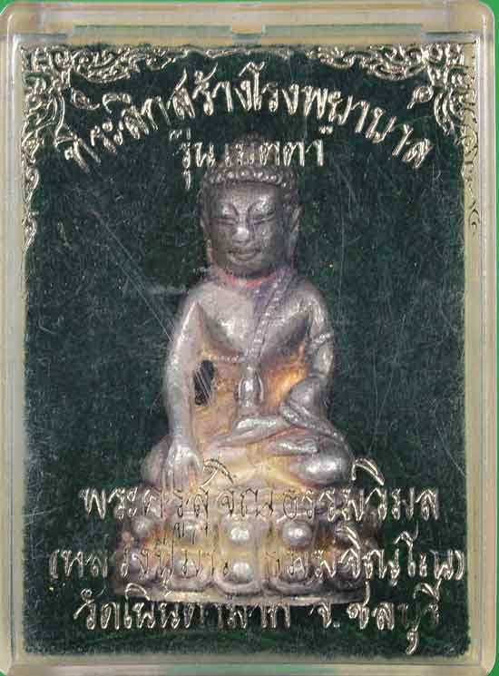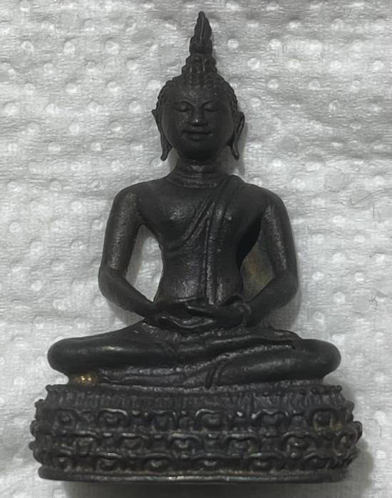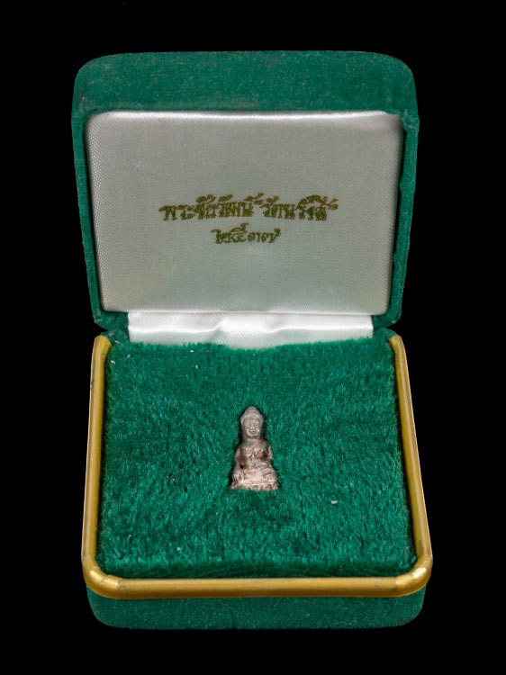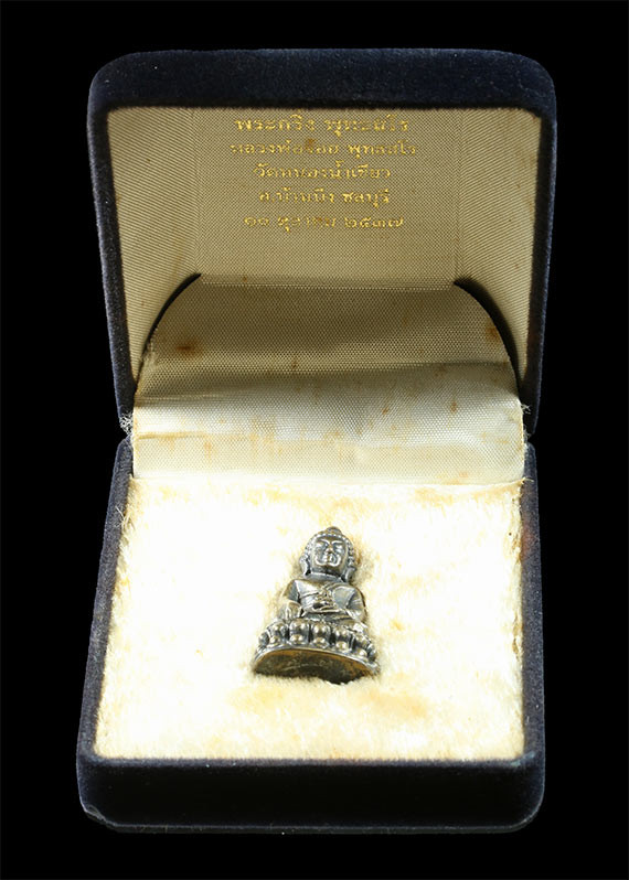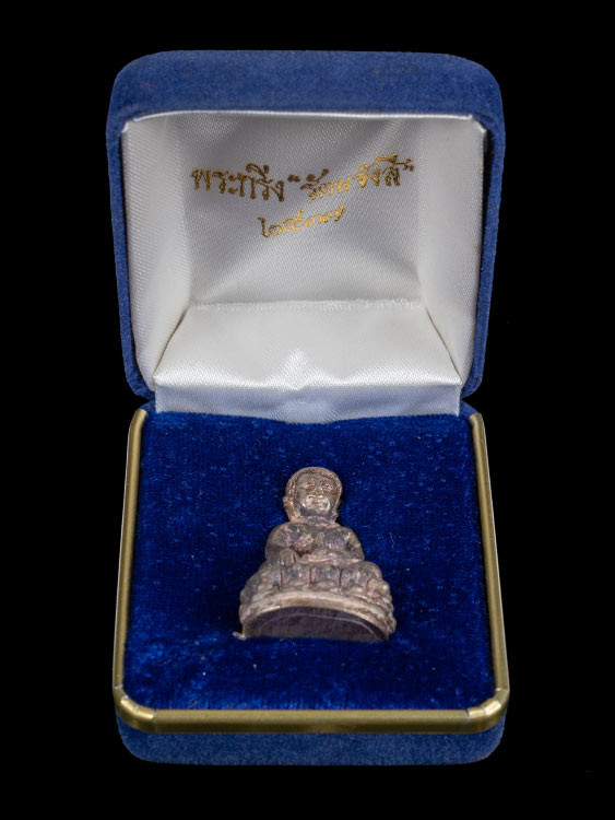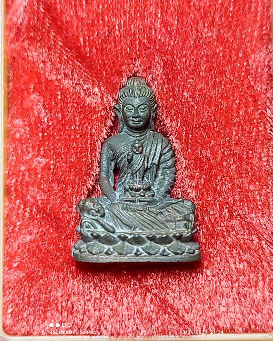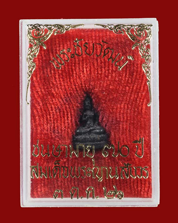พระชัยวัฒน์รุ่นแรก วัดเศวตฉัตร 2509 เนื้อนวะโลหะ ผิวกลับดำ สวยเดิม คราบเบ้าตามซอก มีกล่องเดิม |