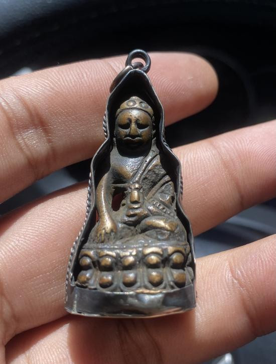 พระกริ่งมังกรคู่หลวงปู่แสน วัดหนองจิก เนื้อเงินก้นทองคำ พร้อมเลี่ยม |