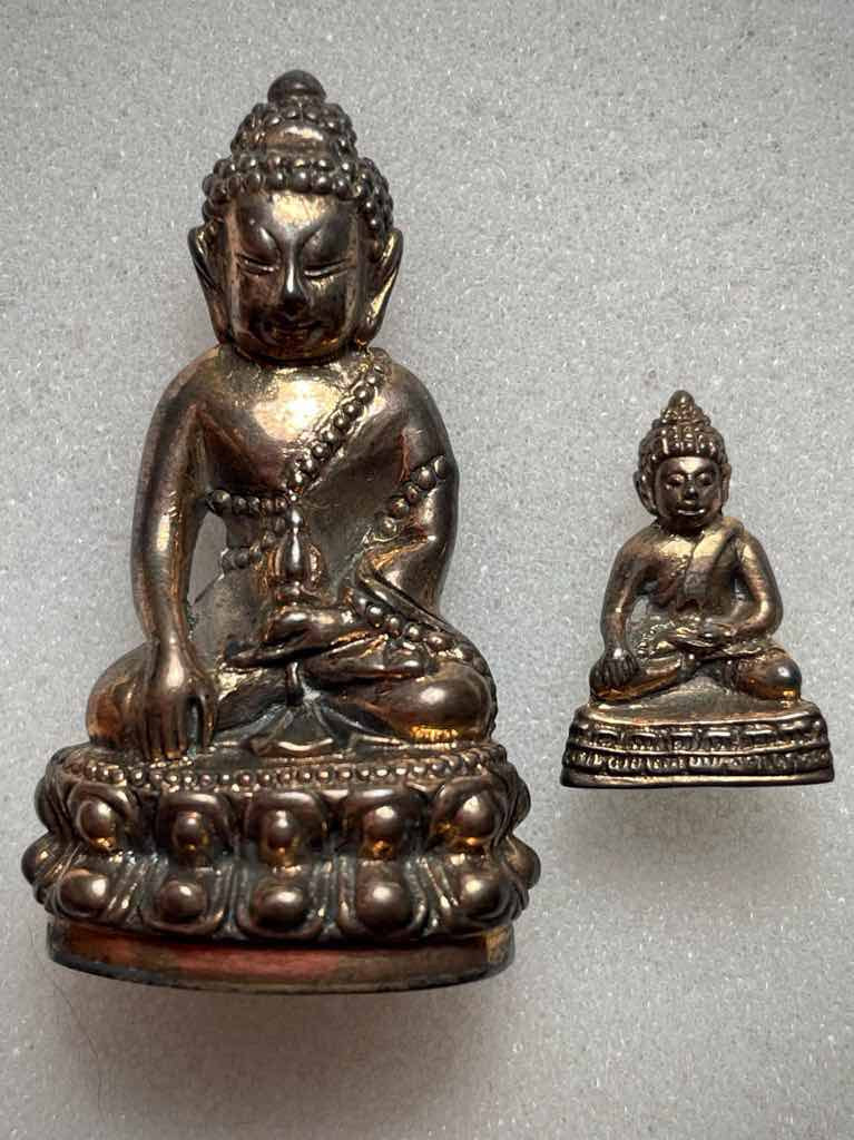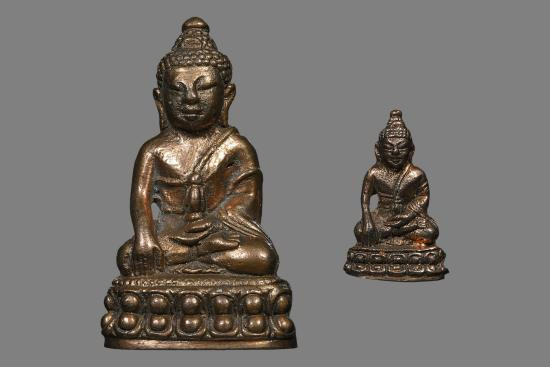 วัดใจ พระพุทธเนื้อทองผสม องค์เล็ก รมดำสวยเดิมไม่ทราบที่ หล่อตัน |