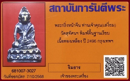 พระแก้วกรมสรรพสามิตร เนื้อเงิน หมายเลข65721 (เคาะเดียว) |