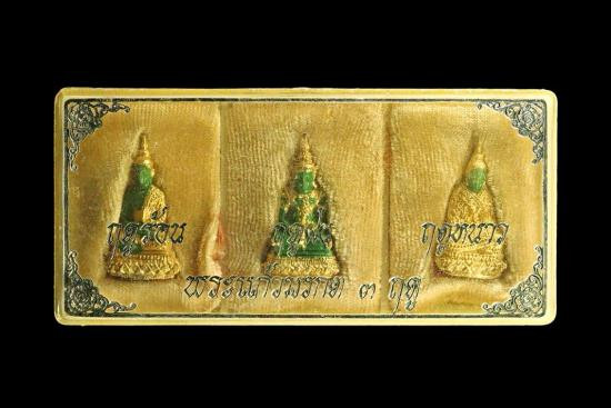 2 กล่องรูปหล่อพระแก้วมรกตอุดกริ่ง ฉลองกรุงรัตนโกสินทร์ 200 ปี ชุด 3 ฤดู ร้อน,ฝน,หนาว เนื้อทองผสมลงยาสีเขียวกะหลั่ยทอง อุดกริ่ง ปลุกเสกฯปี พ.ศ.2525 เป็นพระพุทธรูปศักดิ์สิทธิ์คู่บ้านคู่เมืองของประเทศไทย |