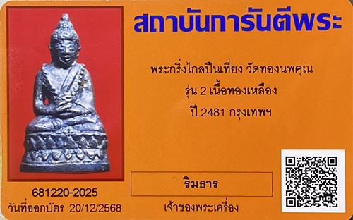 (เคาะแดง2900) +บัตรสมาคม พระกริ่งโสฬส มปร. 2515 รมดำ |