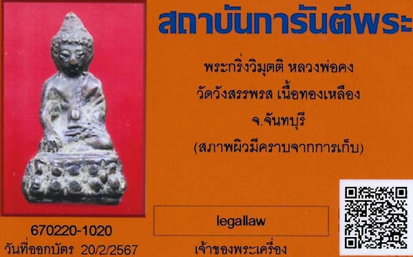 (เคาะแดง1900) +บัตรสมาคม พระกริ่ง หลวงพ่อพุธ วัดป่าสาละวัน |