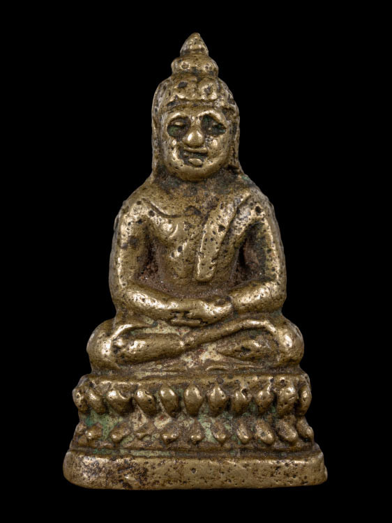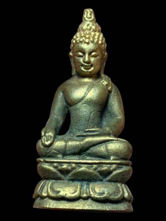 พระพุทธนิรโรคันตรายชัยวัฒน์จตุรทิศ พิมพ์หน้าใหญ่ เนื้อทองเหลือง ปี 2511 จ.พัทลุง (ตอก 3 โค้ด) พ่อท่านคล้าย พ่อท่านหมุน อ.นำ ลพ.คง ลพ.ปาน ปลุกเสก |