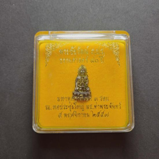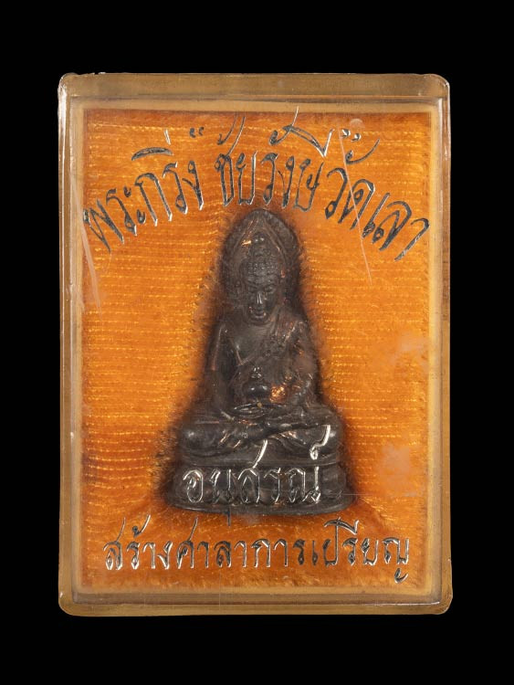 พระไชยวัฒน์เงินพดด้วง๕แผ่นดิน รุ่นแรก ครอบครัวช่องส่องผี ผสมเงินพดด้วงสมัยสมเด็จพระเจ้าตากสินมหาราช (ตราตรี) พร้อมกล่องสวยครับ |