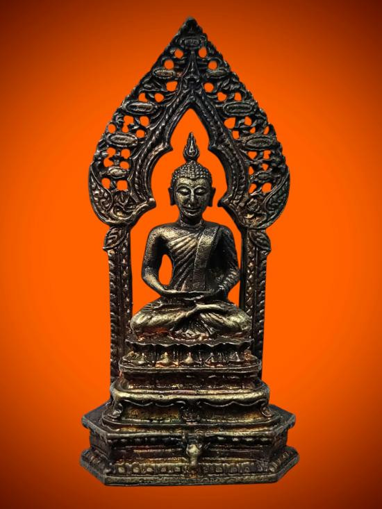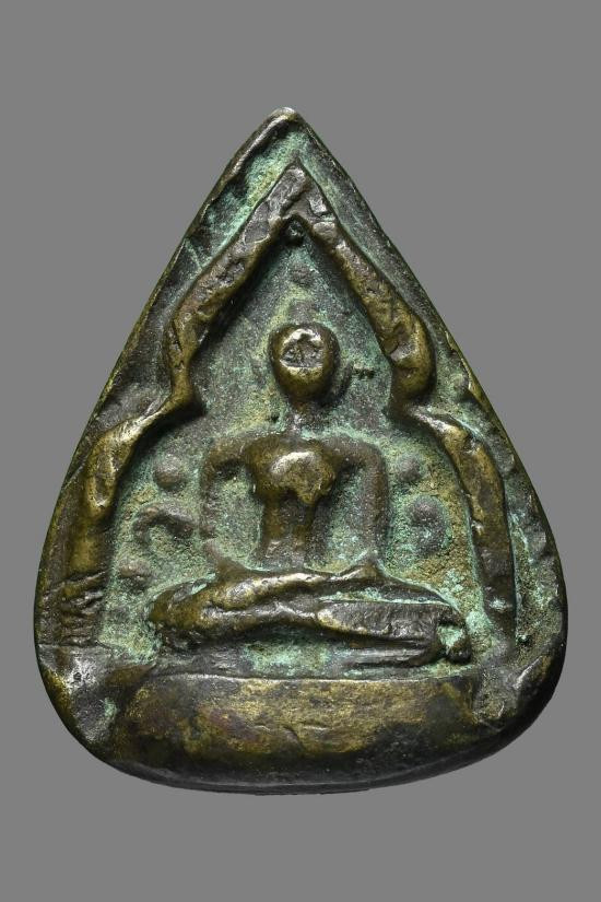 พระชัยวัฒน์ วัดราชบพิธฯ **รุนแรก** พิมพ์หลังเรียบ เนื้อทองเหลือง ปี 2466 จ.กรุงเทพฯ |