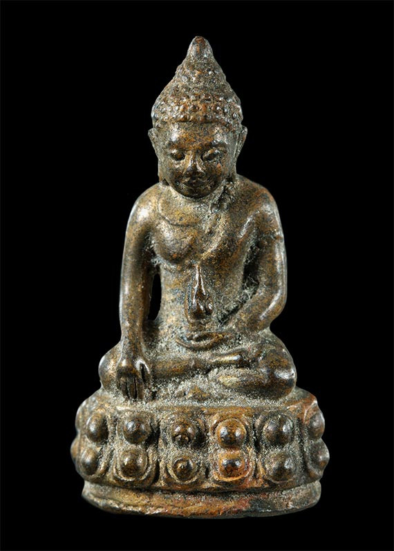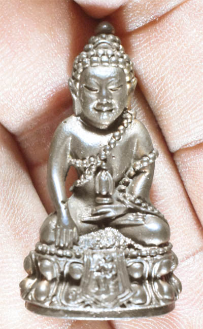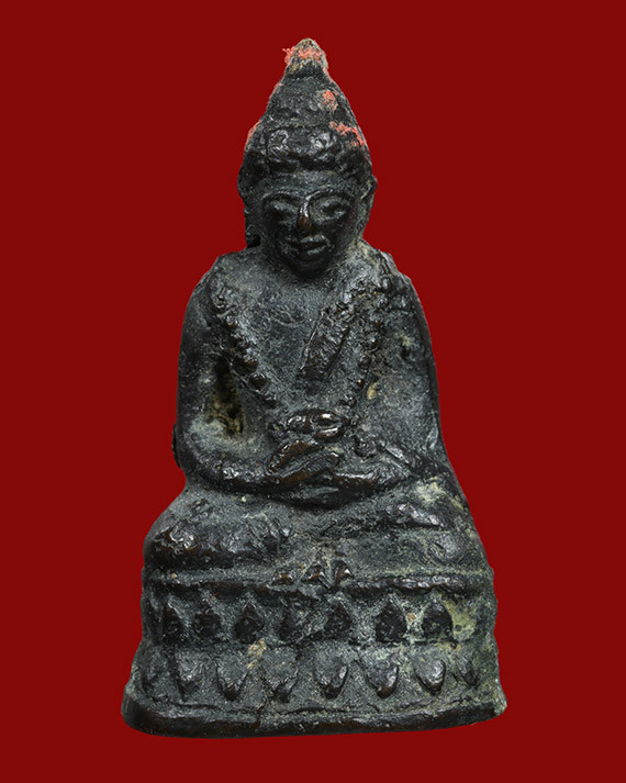 วัดใจพระแท้....พระกริ่งอุปคุต หน้าตั๊กแตน หลวงพ่ออิ่ม วัดหัวเขา จ.สุพรรณบุรี เนื้อโลหะผสม หล่อโบราณยุคต้น ราวปี พ.ศ. 24702480 |