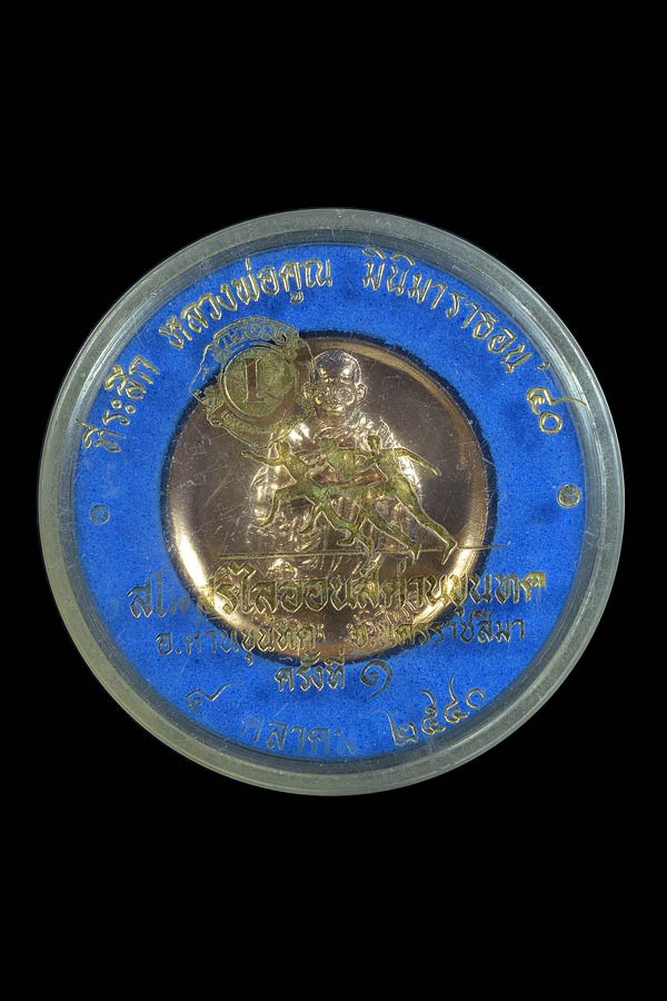 เหรียญ ที่ระลึก หลวงพ่อคูณ มินิมาราธอน ครั้งที่ 1 ( เนื้อทองแดงกะไหล่ทอง ) สนับสนุนโดย สโมสรไลอ้อนส์ ด่านขุนทด จัดแข่งขันในวันเกิดหลวงพ่อคูณ วันที่ 4 ตุลาคม พ.ศ.2540 |