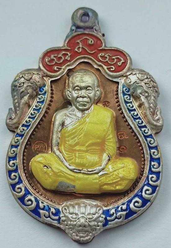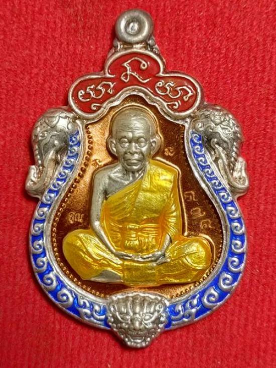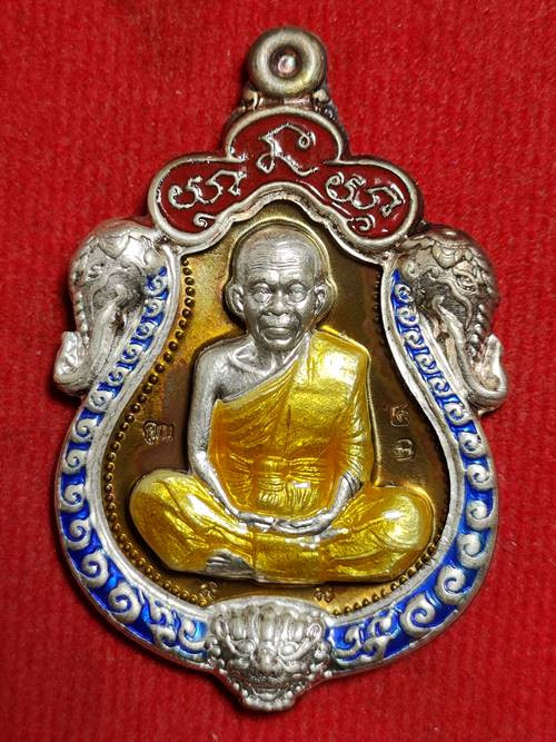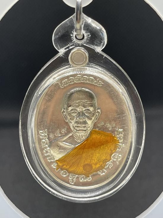 เหรียญหลวงพ่อคูณ ปริสุทโธ วัดบ้านไร่ รุ่นไตรสรณะ จัดสร้างปี ๒๕๕๗ เหรียญจากชุดกรรมการอุปถัมภ์ เนื้อเงิน ลงยาจีวรเหลือง หมายเลข ๑๔๙ |