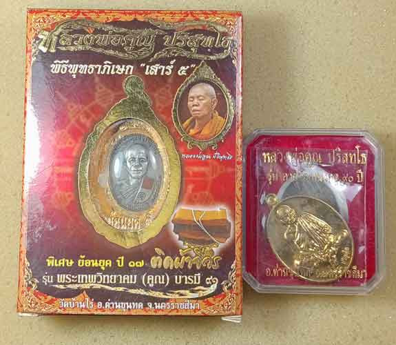 เหรียญย้อนยุค ปี17 ติดผ้าจีวร รุ่นพระเทพวิทยาคม (คูณ) บารมี๙๑ หลวงพ่อคูณ กล่องเดิม + เหรียญ รุ่นอายุวัฒนมงคล 90 ปี หลวงพ่อคูณ กล่องเดิม |