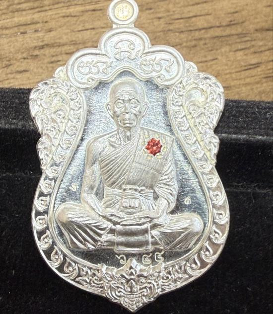 เหรียญเสมา รุ่น มนต์มหากาฬ หลวงพ่อคูณ วัดบ้านไร่ ปี 2557 เนื้อเงินฝังทับทิม หมายเลข 644 |