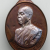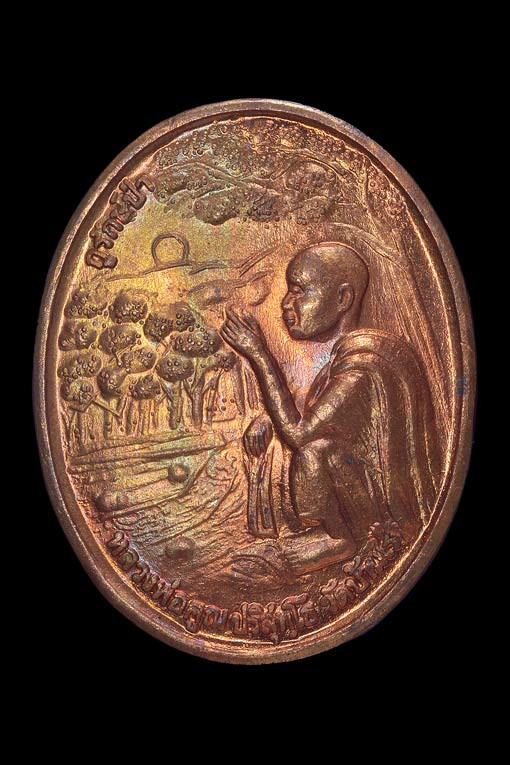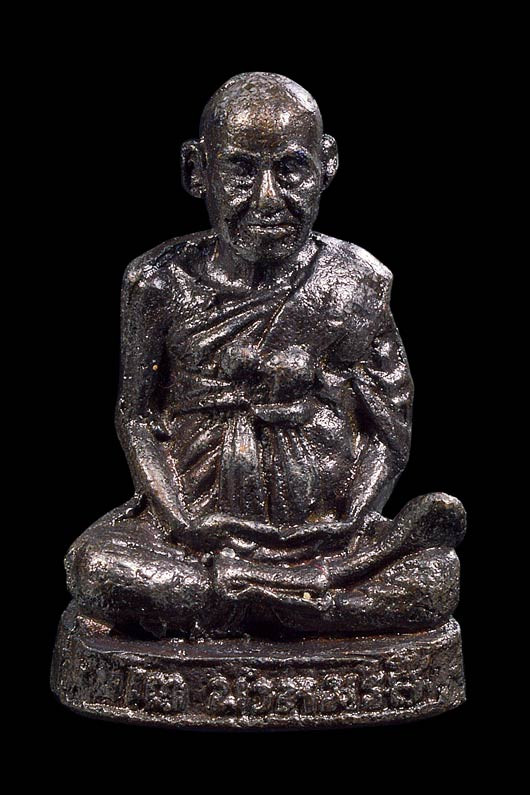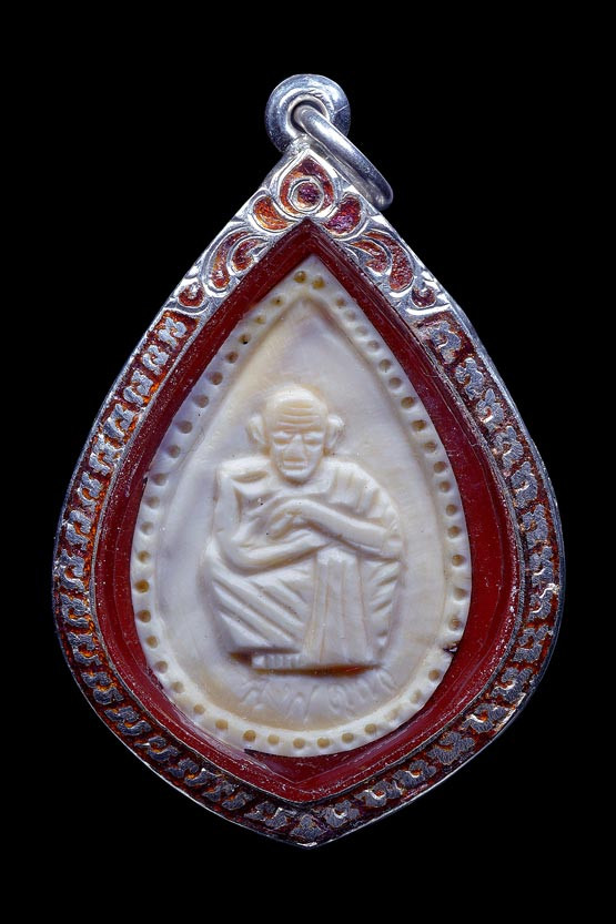 รูปเหมือนนั่งยองเนื้องาแกะสลัก ( พิมพ์หยดน้ำ , วัดองค์พระ 3.5 x 2.5 ซม. ) พ.ศ.2553 ( เลี่ยมกรอบเงิน ) |