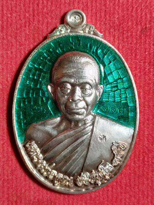 ***(หมายเลข 3)***เจริญพรบน 92 หลวงพ่อคูณ ปี 2557 เนื้อเงินลงยาเขียว หน้ากากทองคำแท้ พร้อมกล่องเดิม** |