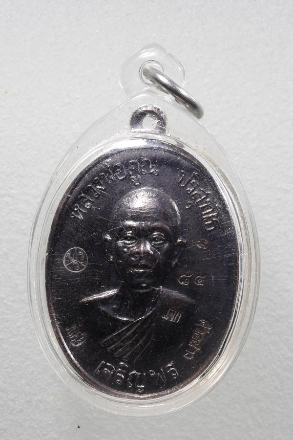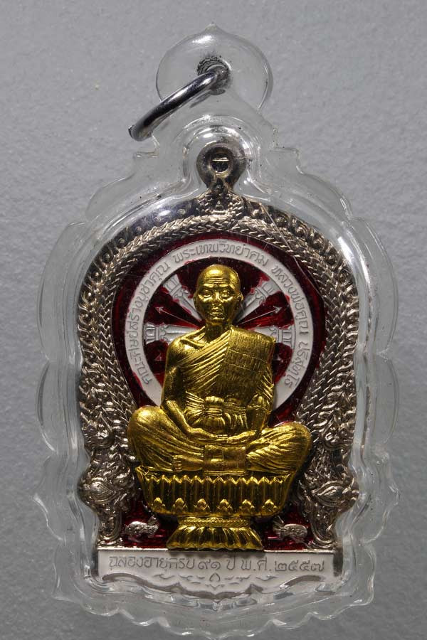 ล็อคเก็ตหลวงพ่อคูณ ปริสุทโธ รุ่น มีเงินแสนกอง มีทองแสนหาบ ออกวัดใหม่อัมพร ปี 2540 ฉากสีขาวตัวถังแสตนเลส เลี่ยมเดิมจากวัด เคาะเดียวแดง |
