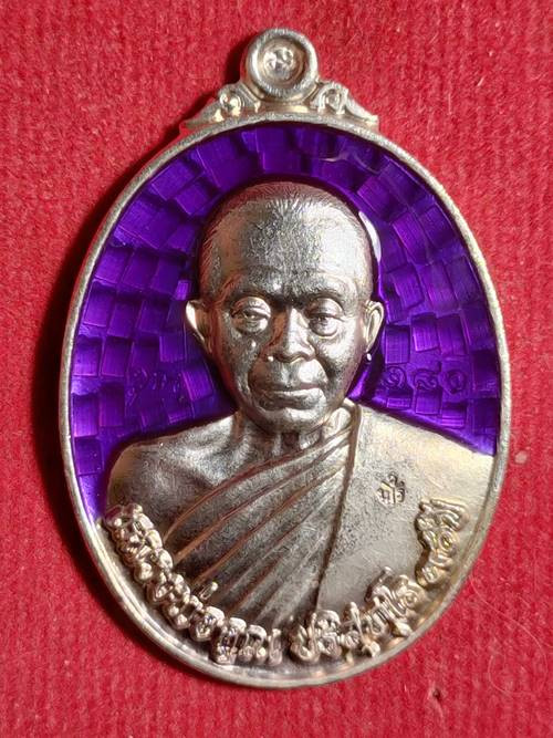 เหรียญหลวงพ่อคูณ ปริสุทโธ รุ่น ฉลองวิหารเทพ ออกวัดบ้านไร่ ปี 56 เนื้อ เงินลงยาสีม่วง หมายเลข 132 สภาพสวย เคาะเดียวแดง |