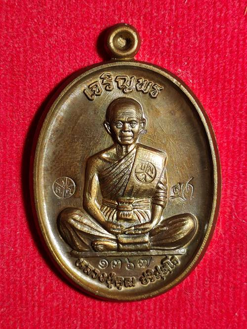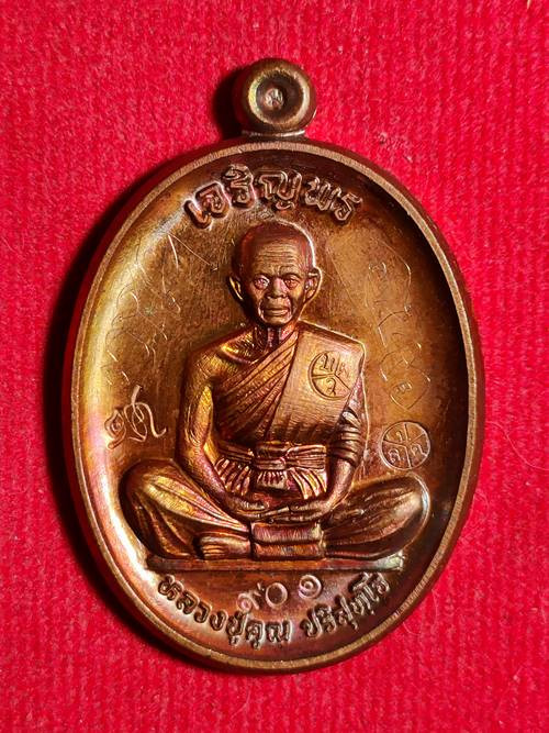 เหรียญหลวงพ่อคูณ ปริสุทโธ รุ่น เจริญพรบนเทพประทานพร ออกวัดบ้านไร่ ปี 58 เนื้อ ทองแดงรมมันปู หมายเลข 901 สภาพสวย เคาะเดียวแดง |