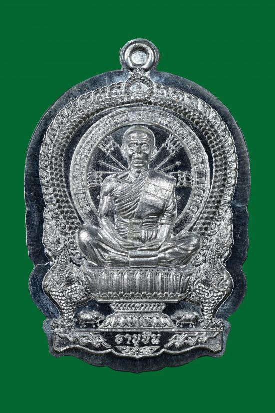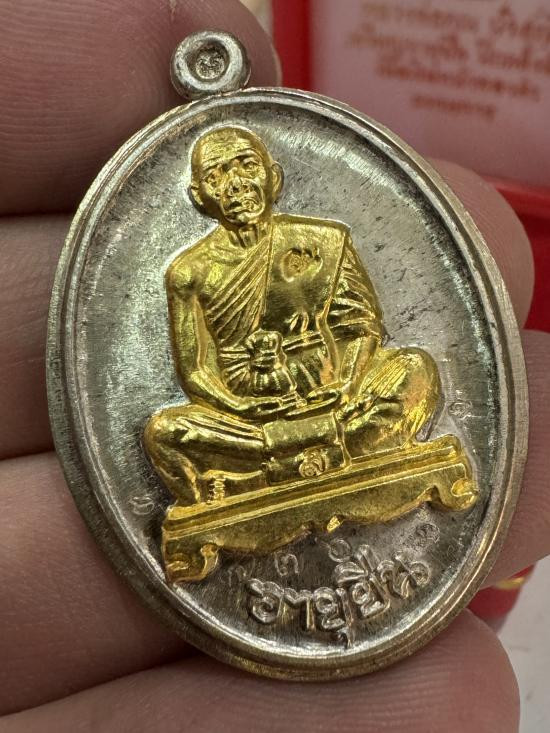 เหรียญอายุยืน รุ่นพิเศษ ปี2553 เนื้อเงิน ไม่ตัดปีก หน้ากากทองคำ no.36 มีกล่อง |