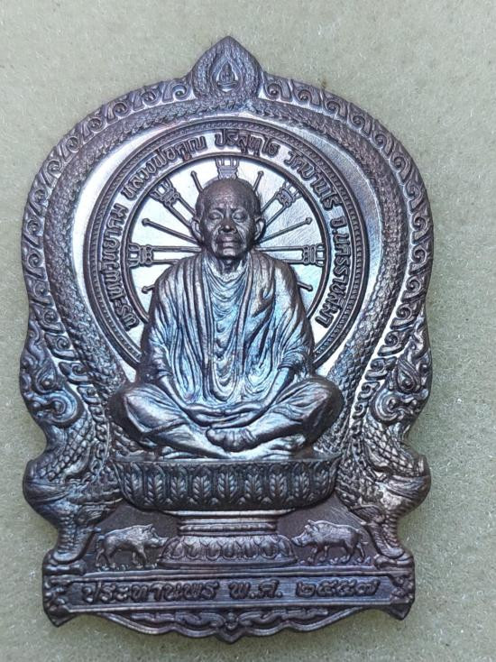เหรียญนั่งพานวัดบ้านคลอง2 หลวงพ่อคูณ วัดบ้านไร่ เนื้อทองแดง ปี2557 |