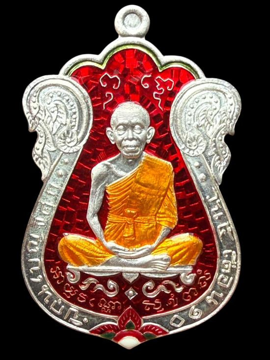 @@@ เหรียญมนต์พระกาฬปราบไพรี หลวงพ่อคูณ เนื้อเงินลงยาสีแดงหมายเลข 824 ปี 2557 |