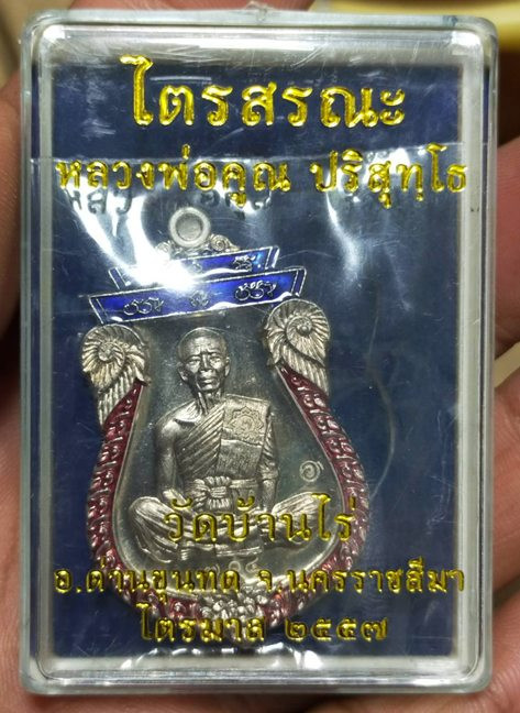 เหรียญหลวงพ่อคูณเต็มองค์ รุ่น ไตรสรณะ เนื้ออัลปาก้าลงยา หมายเลข 704 พร้อมกล่องเดิม สภาพสวยครับ |