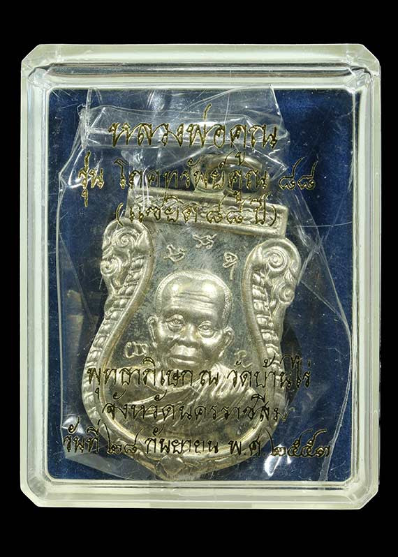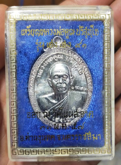 เหรียญหลวงพ่อคูณ เนื้อเงิน รุ่น เฮง เฮง 91 หมายเลข 855 สร้าง 1500 เหรียญ สภาพสวย พร้อมกล่องเดิม |