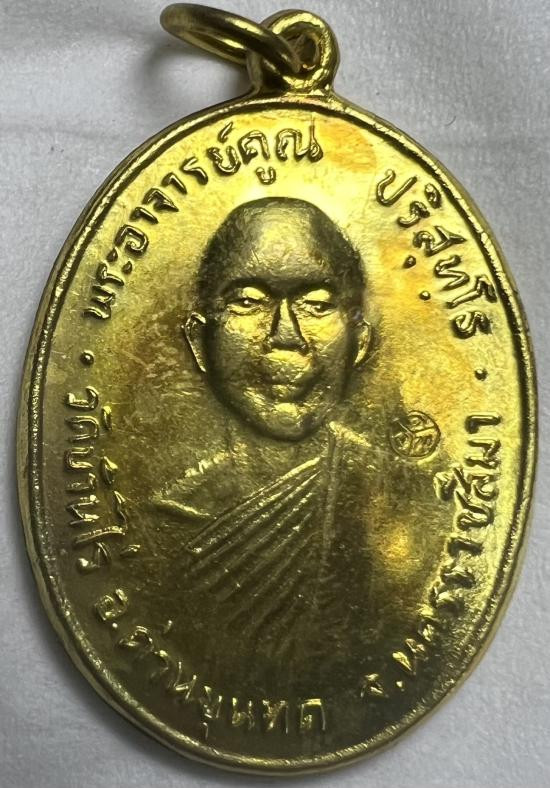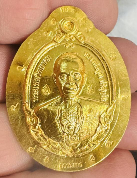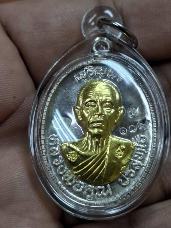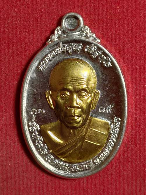 เหรียญห่วงเชื่อม หลวงพ่อคูณ ปริสุทโธ วัดบ้านไร่ เนื้อเงินลงยาหน้าทองคำ หมายเลข ๓๒ เคาะเดียวแบ่งปัน |