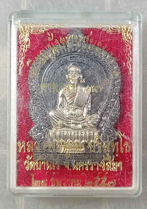 เหรียญหลวงพ่อคูณ รุ่นบารมีปริสุทโธ เนื้อเงินหลังแบบ วัดดำเนินสถิตย์ (บ้านกอก) ปี 55 หมายเลข ๖ พร้อมกล่อง |
