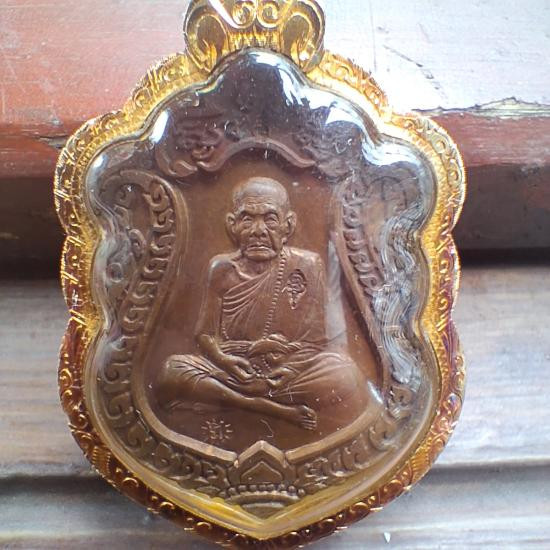 เหรียญเสมา หลวงปู่หมุน วัดบ้านจาน ศรีสะเกษ รุ่นมหาสมปรารถนา เนื้อทองแดง กรอบทองคำพร้อมบูชาขึ้นคอ |