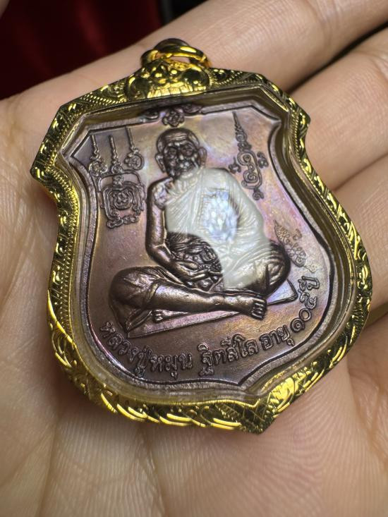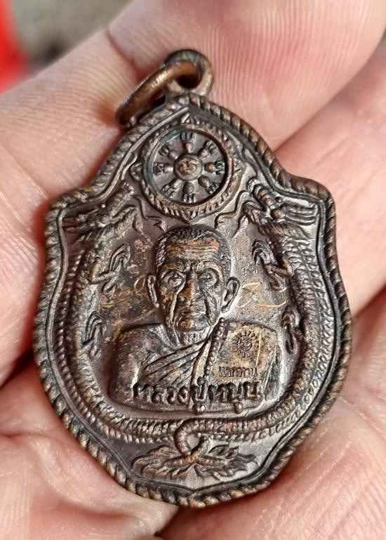 เหรียญมนต์พระกาฬ หลวงปู่หมุน วัดบ้านจาน เนื้อทองแดง ปี2543 เลี่ยมกรอบทอง (กรอบทองสั่งทำร้านจิบเซ่งเฮง ทำใหม่ชั่วโมงนี้น่าจะ 15,000+ครับ) |