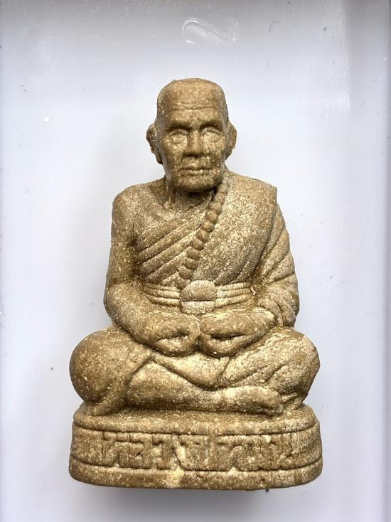 รูปเหมือนปั๊มหลวงพ่อกวย หลวงปู่หมุนปลุกเสก ปี๒๕๔๑ สภาพสวยจารยันต์เต็มองค์พร้อมกล่องเดิมจากวัด.... |