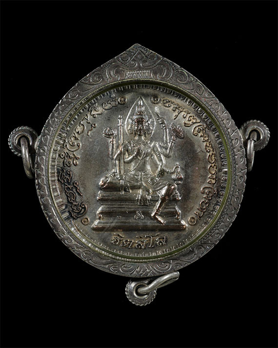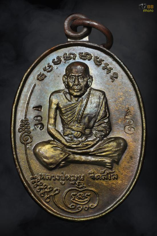 หลวงปู่หมุน เหรียญมนต์พระกาฬ หลวงปู่หมุน ฐิตสีโล วัดบ้านจาน รุ่นแรก ปี พ.ศ. 2543 เนื้อนวโลหะ เลข 381 |