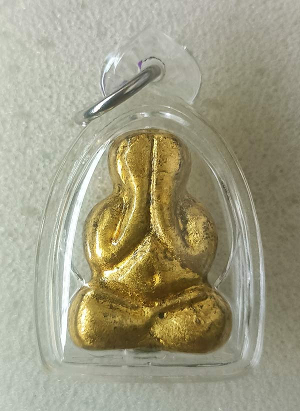 พระปิดตาวัดซับลำใย รุ่นเงินไหลมา เนื้อผงปิดทอง ปี 2542 จ.ลพบุรี ( หลวงปู่หมุน วัดบ้านจาน ปลุกเสก ) พร้อมเลี่ยม + บัตรรับรอง |