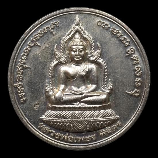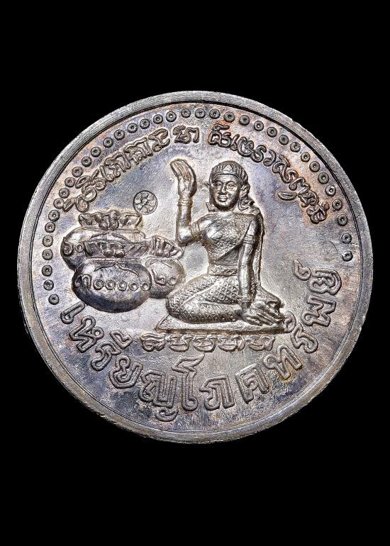 เคาะเดียว เหรียญโภคทรัพย์ หลวงปู่หมุน วัดบ้านจาน เนื้อเงิน ปี 2543 กล่องเดิม |