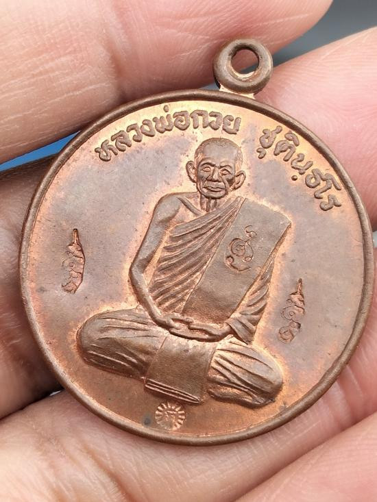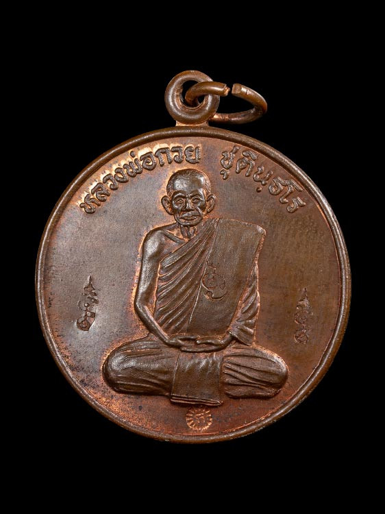 เหรียญตู้ไปรษณีย์ หลวงพ่อกวย หลวงปู่หมุนเสก ออกวัดซับลำไย ปี2543 เนื้อทองแดงรมดำ |