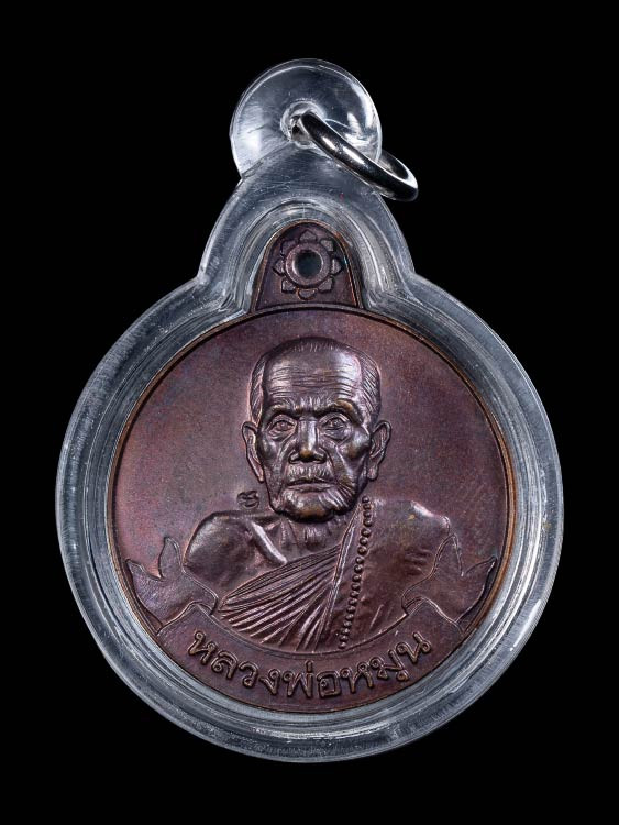 เหรียญหลวงปู่หมุน วัดบ้านจาน รุ่นหมุนเงินหมุนทอง พิมพ์ประคำ 18 เม็ดบาง เนื้อทองแดง ปี 2542 จ.ศรีสะเกษ (โค้ดมะตื้น) |