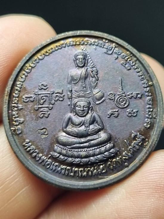 เหรียญ 2 อาจารย์หลวงพ่อมุม เนื้อทองแดงผิวไฟ จารเต็ม |
