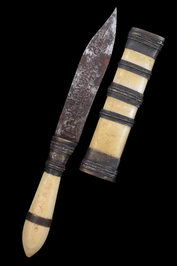 มีดหมอเทพศาสตรา รุ่นพระเจ้าห้าพระองค์ เนื้อโลหะ ปีพ.ศ 2543 เลข377 พร้อมบัตรสมาคม หลวงปู่หมุน ฐิตสีโล วัดบ้านจาน ศรีสะเกษ |