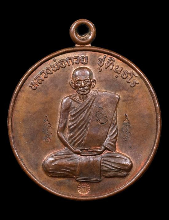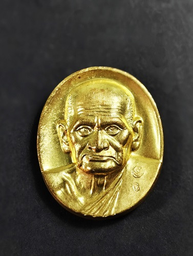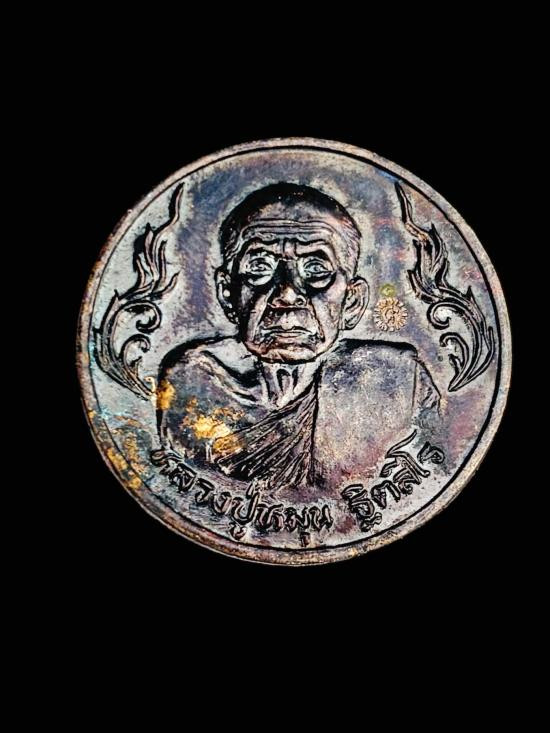 เหรียญมนต์พระกาฬหลวงปู่หมุนวัดบ้านจาน เนื้อทองแดง ตอกโค๊ต สร้างปี พ.ศ.2543 เลี่ยมทอง มีบัตร g-pra |