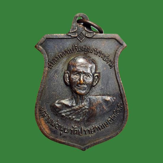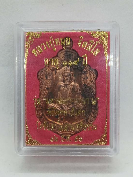 เหรียญเสมา หลวงปู่หมุน วัดบ้านจาน ศรีสะเกษ รุ่นมหาสมปรารถนา เนื้อทองแดง กรอบทองคำพร้อมบูชาขึ้นคอ |