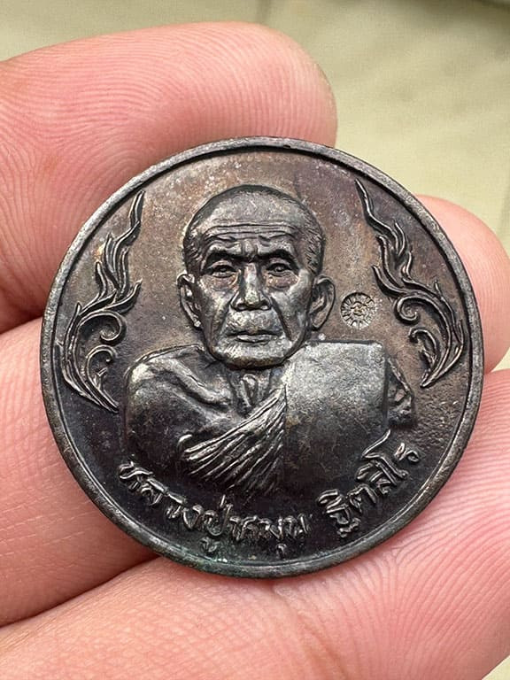 เหรียญพรหมจักรสีห์ เนื้ออัลปาก้า หลวงปู่หมุน วัดบ้านจาน จ.ศรีสะเกษ รุ่นอายุยืน ปี2546 หมายเลข 1111 สภาพสวย |