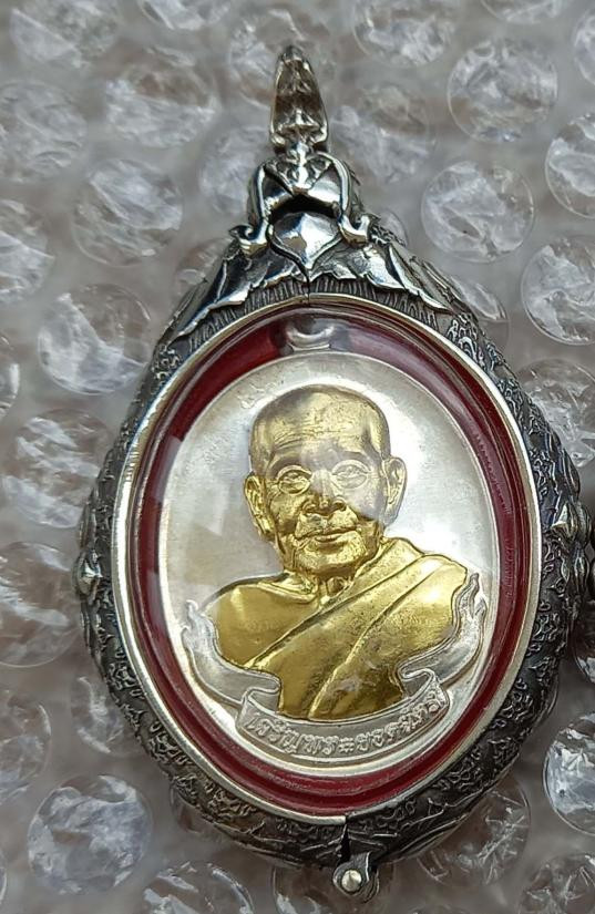 เหรียญรูปไข่หลวงพ่อเงิน เนื้อชุปทองหน้ากากเงิน รุ่นพระพิจิตร ปี2543 หลวงปู่หมุนร่วมปลุกเสก สภาพสวย |