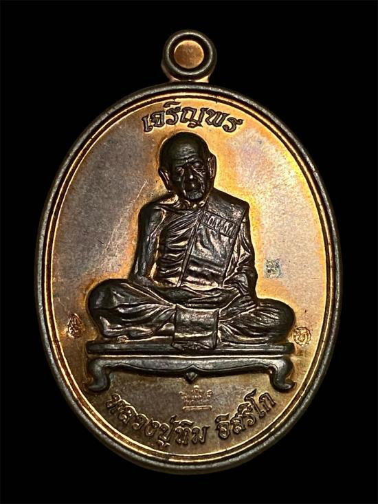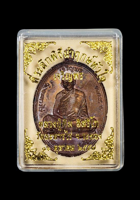 เหรียญห่วงเชื่อม หลวงปู่ทิม อิสริโก วัดละหารไร่ จ.ระยอง รุ่นเมตตามหามงคล 2558 เนื้อทองแดงรมดำ ลงยาจีวร โบว์ขาว |