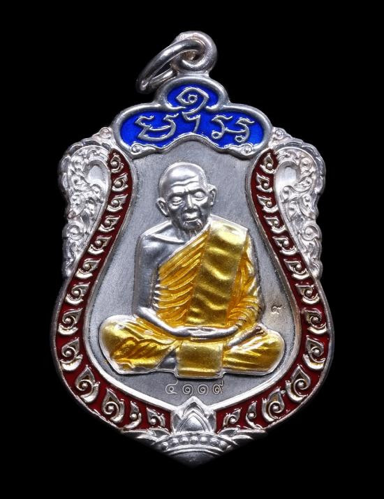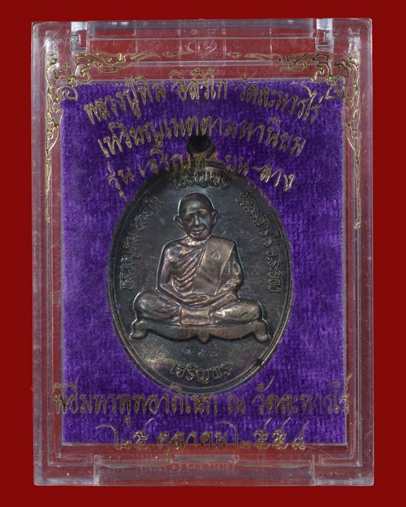 เจริญพรบน ที่ระลึกพิธีนำฤกษ์หัวใจ ปี 57 หลวงปู่ทิม วัดละหารไร่ จ.ระยอง เนื้อเงินลงยา พร้อมกล่องเดิม |