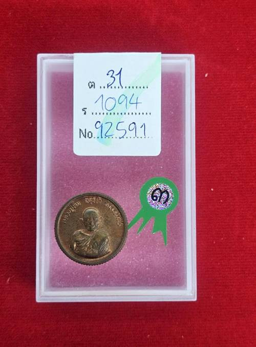 เหรียญขอบสตางค์ รุ่นโสฬส มงคล หลวงปู่ทิม วัดละหารไร่ เนื้อทองแดง ปี2533 ติดรางวัลที่3 |
