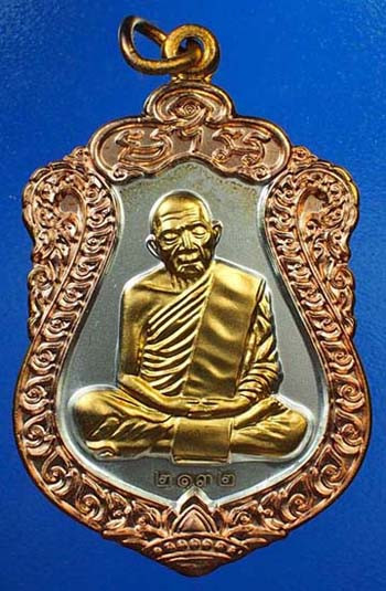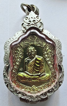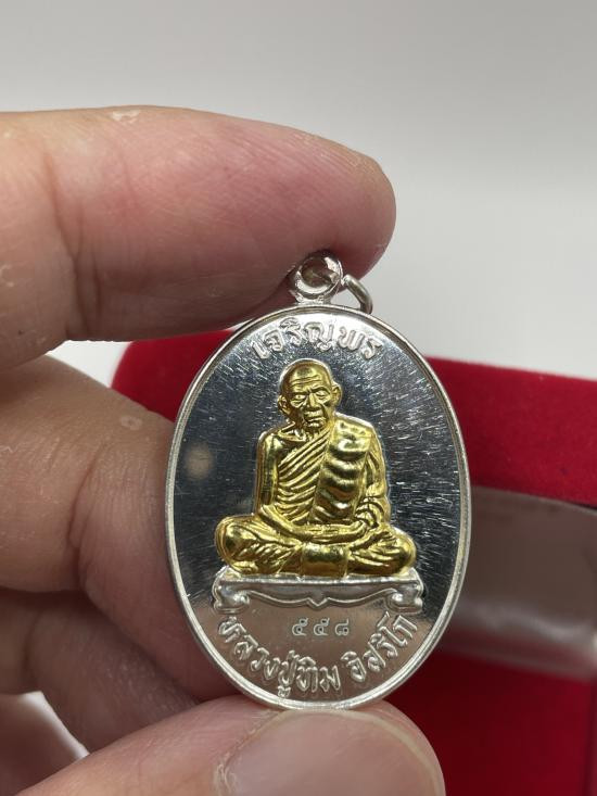 หลวงปู่ทิม รุ่นครบไตรมาส บรรจุหัวใจ ปี2557 เนื้อเงิน หน้ากากทองคำ no.558 มีกล่อง |