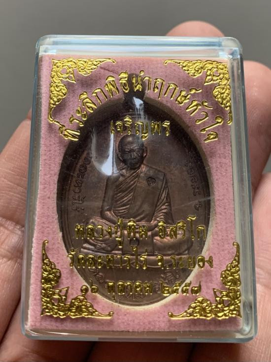 (แบ่งปัน) เหรียญห่วงเชื่อมหลวงปู่ทิม รุ่น ภาวนา เนื้อทองแดง ปี 2558 หมายเลข 30182 บล็อกทองคำ พร้อมกล่อมเดิม |