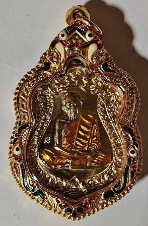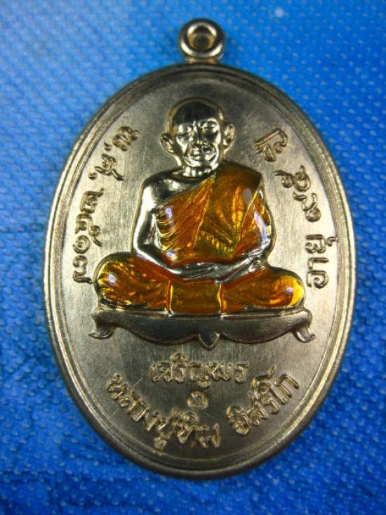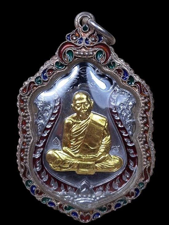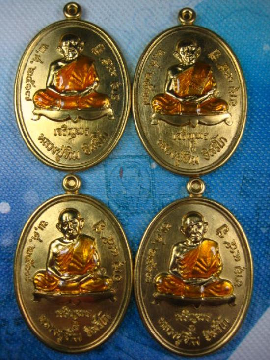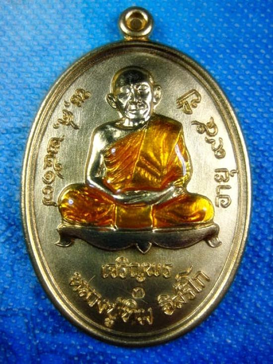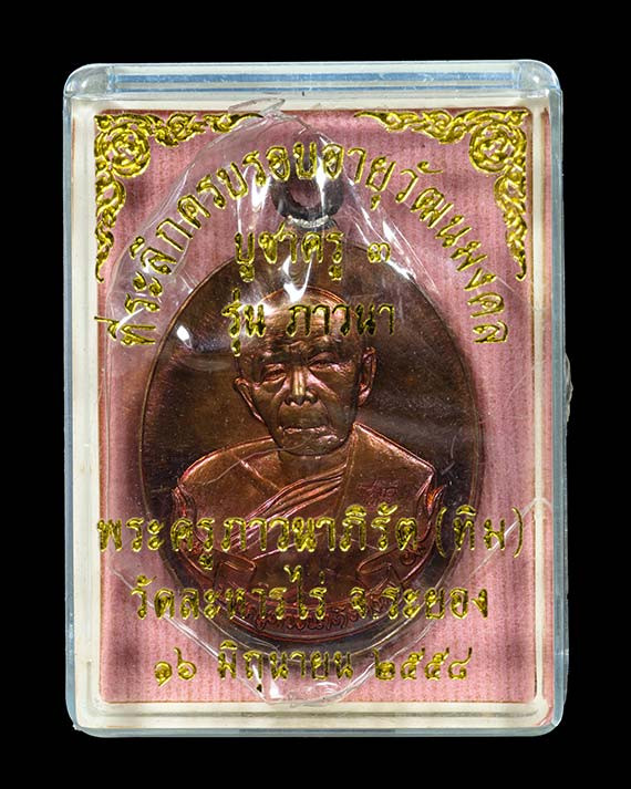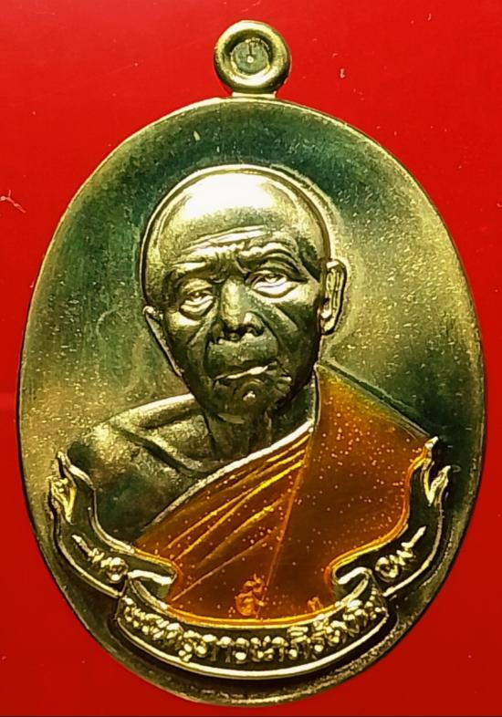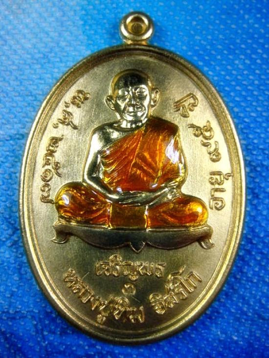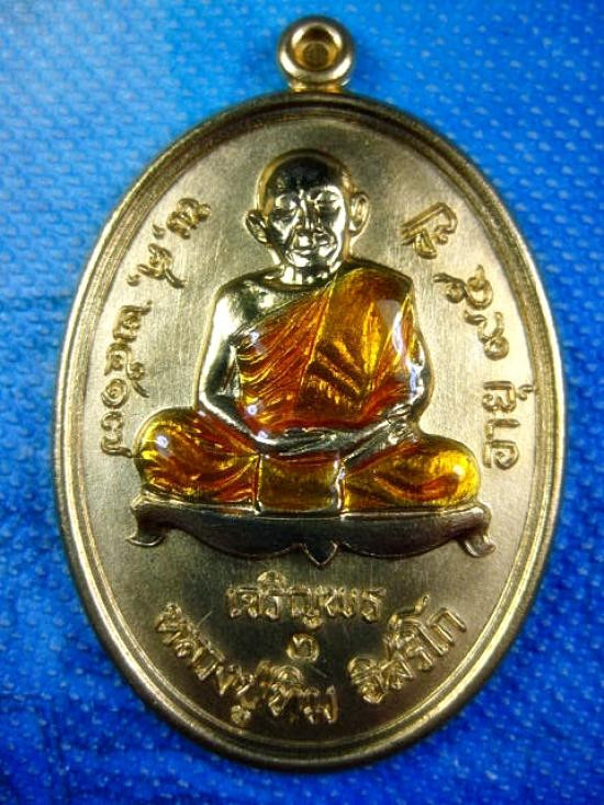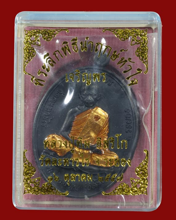 เหรียญเจริญพรบน หลวงปู่ทิม ปี 57 เนื้อทองแดงลงยา บล็อคทองคำ หมายเลข 12149 พร้อมกล่องเดิม |